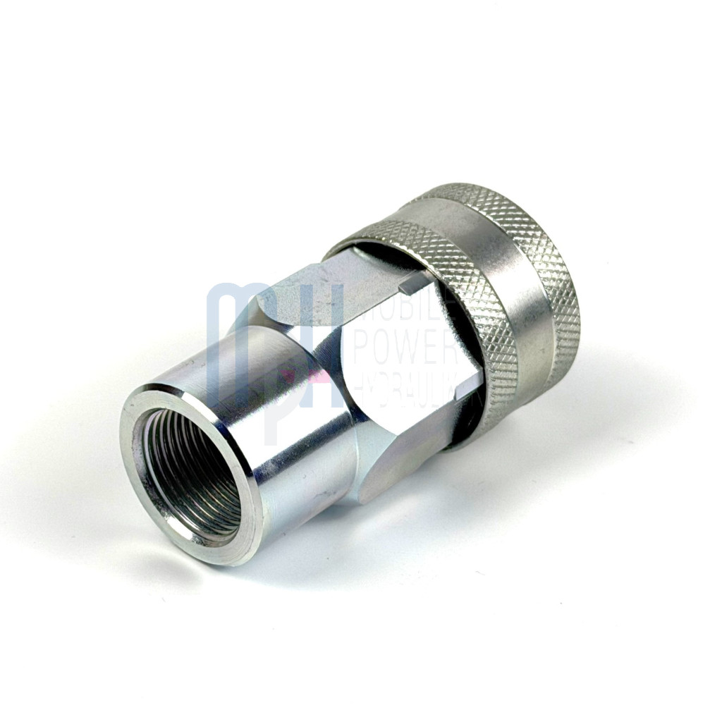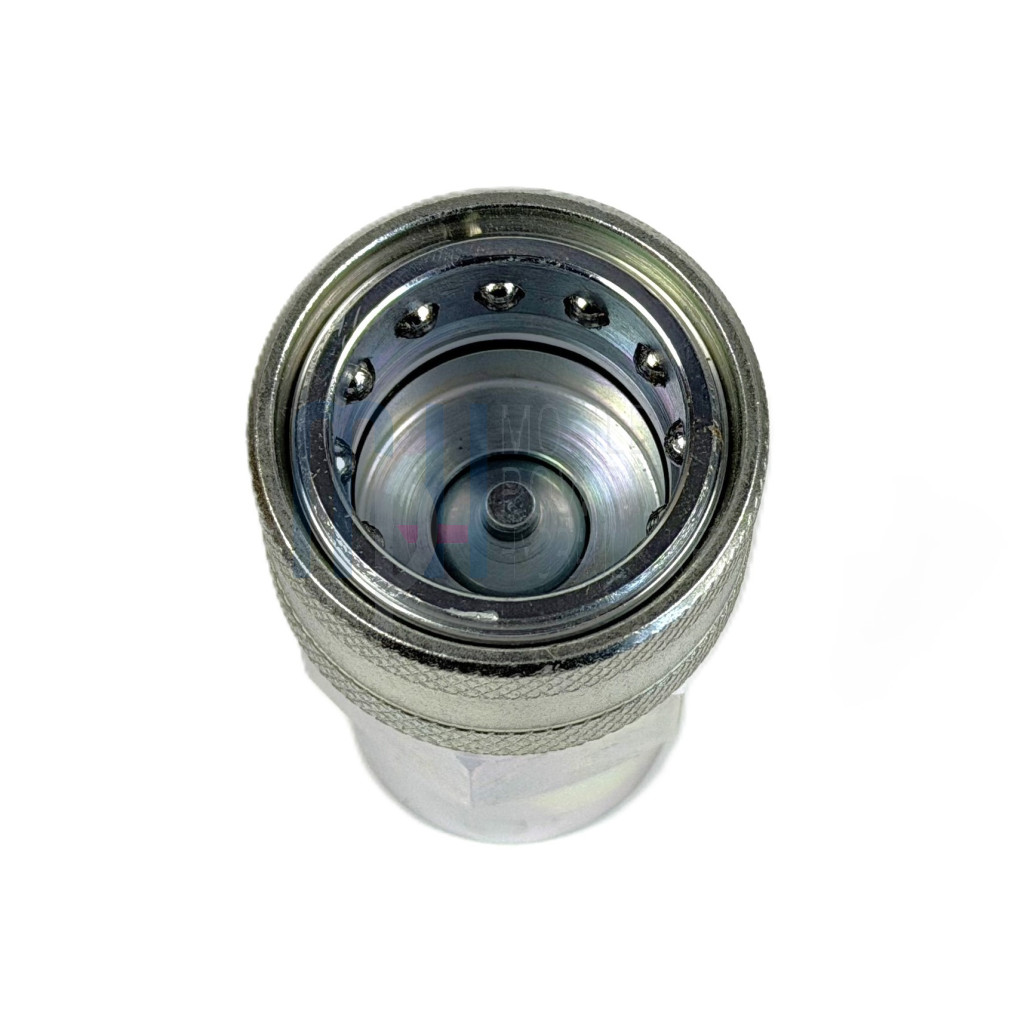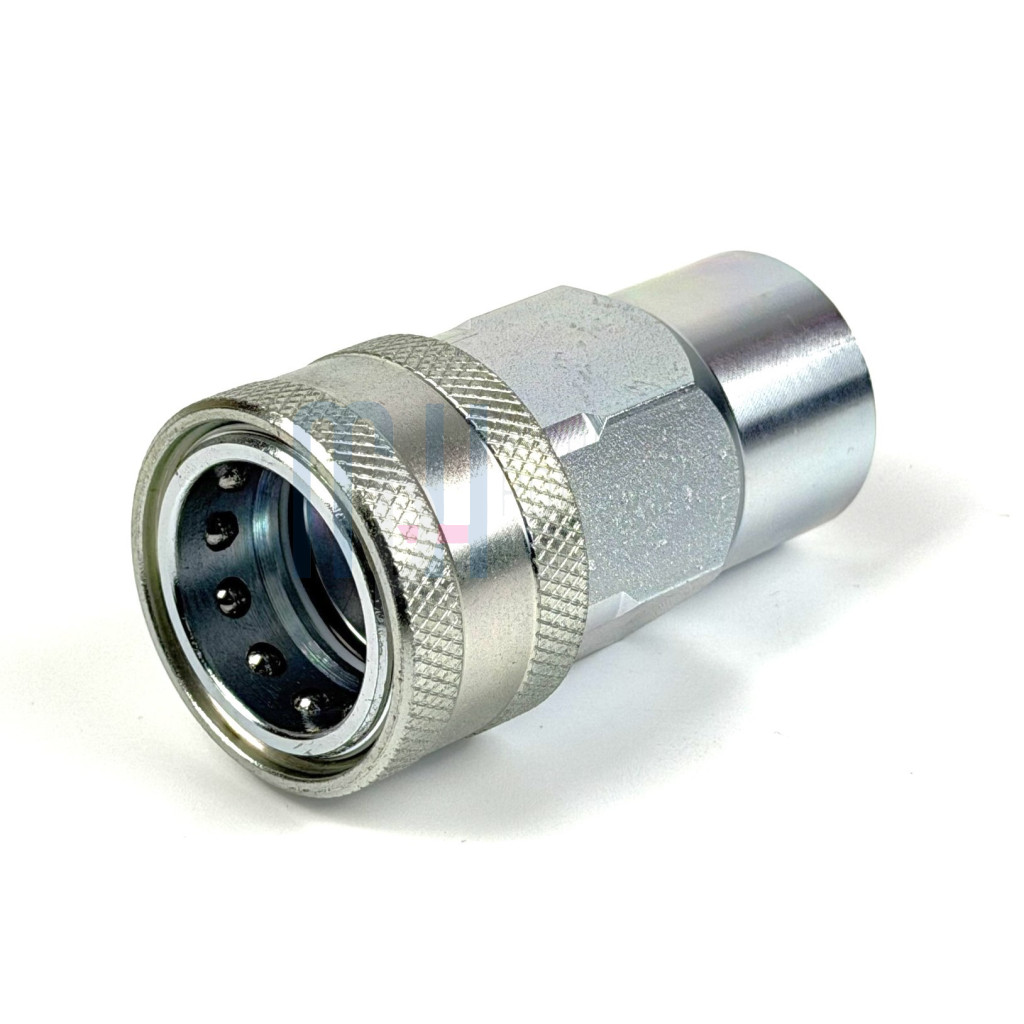 Acest cuplaj rapid este realizat conform standardului ISO 7241-A, cu racord BSP cu filet interior (mamă). Materialul este oțel, etanșarea NBR, care asigură o etanșare fiabilă în sistemele hidraulice. Datorită construcției robuste, este potrivit atât pentru aplicații hidraulice industriale, cât și mobile.