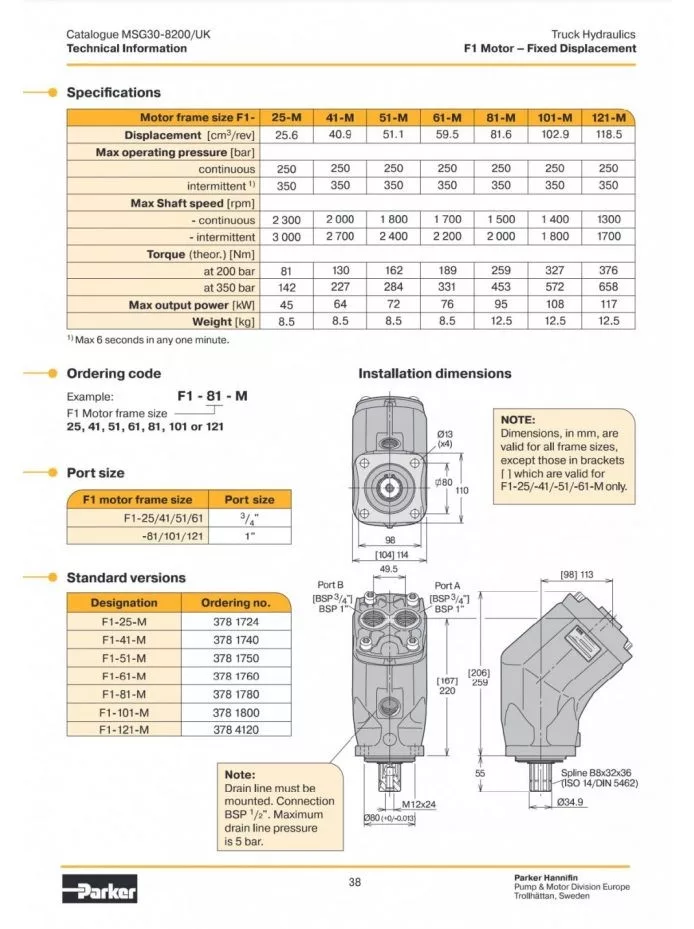 Motorul F1 asigură o funcționare fiabilă în circuite hidraulice, la turații de până la 3000 rot/min și la o presiune de 350 bar (5000 PSI). Construcția motorului hidraulic F1 este extrem de simplă și eficientă. Datorită dimensiunilor compacte, montarea este ușoară și rentabilă.