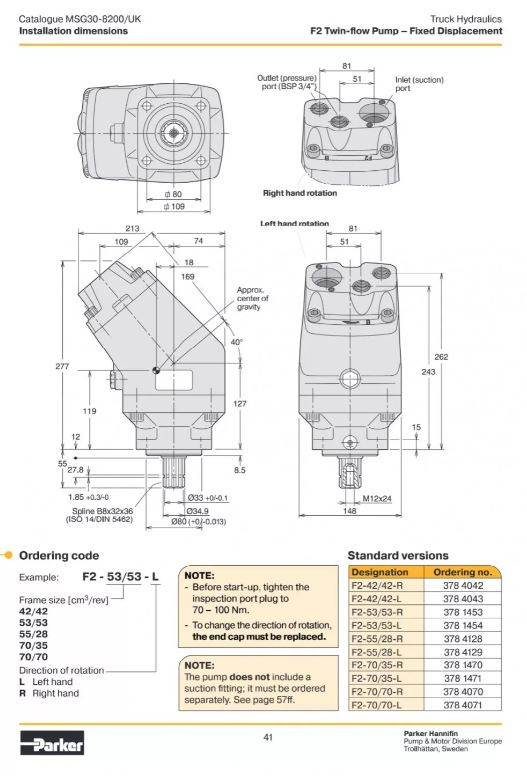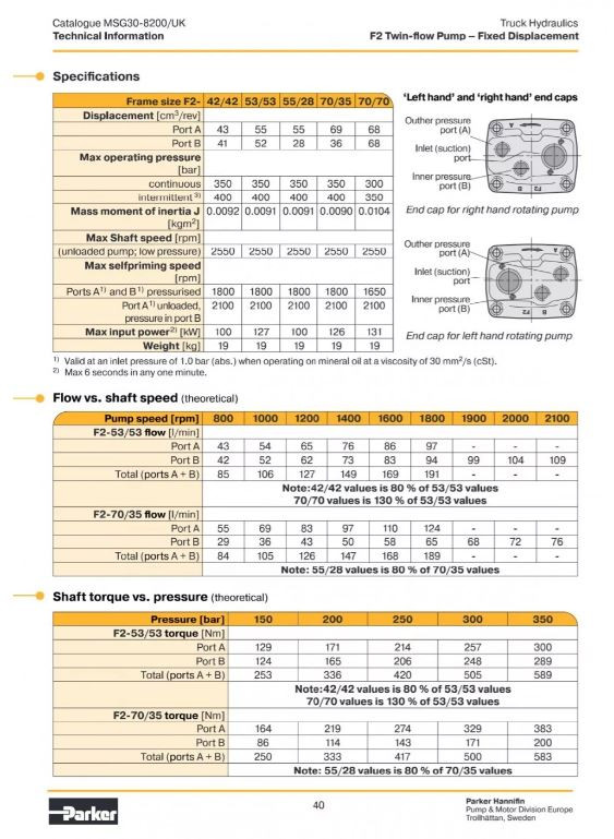 Pompa cu dublu circuit Parker F2 este cea mai bună alegere atunci când trebuie acționate simultan, precis și rapid, două funcții hidraulice independente. Datorită fluxului dublu se pot obține în același timp un debit mare și unul mai mic, sau două debite egale – în funcție de necesitățile sistemului. Această soluție crește nu doar viteza și precizia lucrului, ci optimizează și consumul de combustibil.