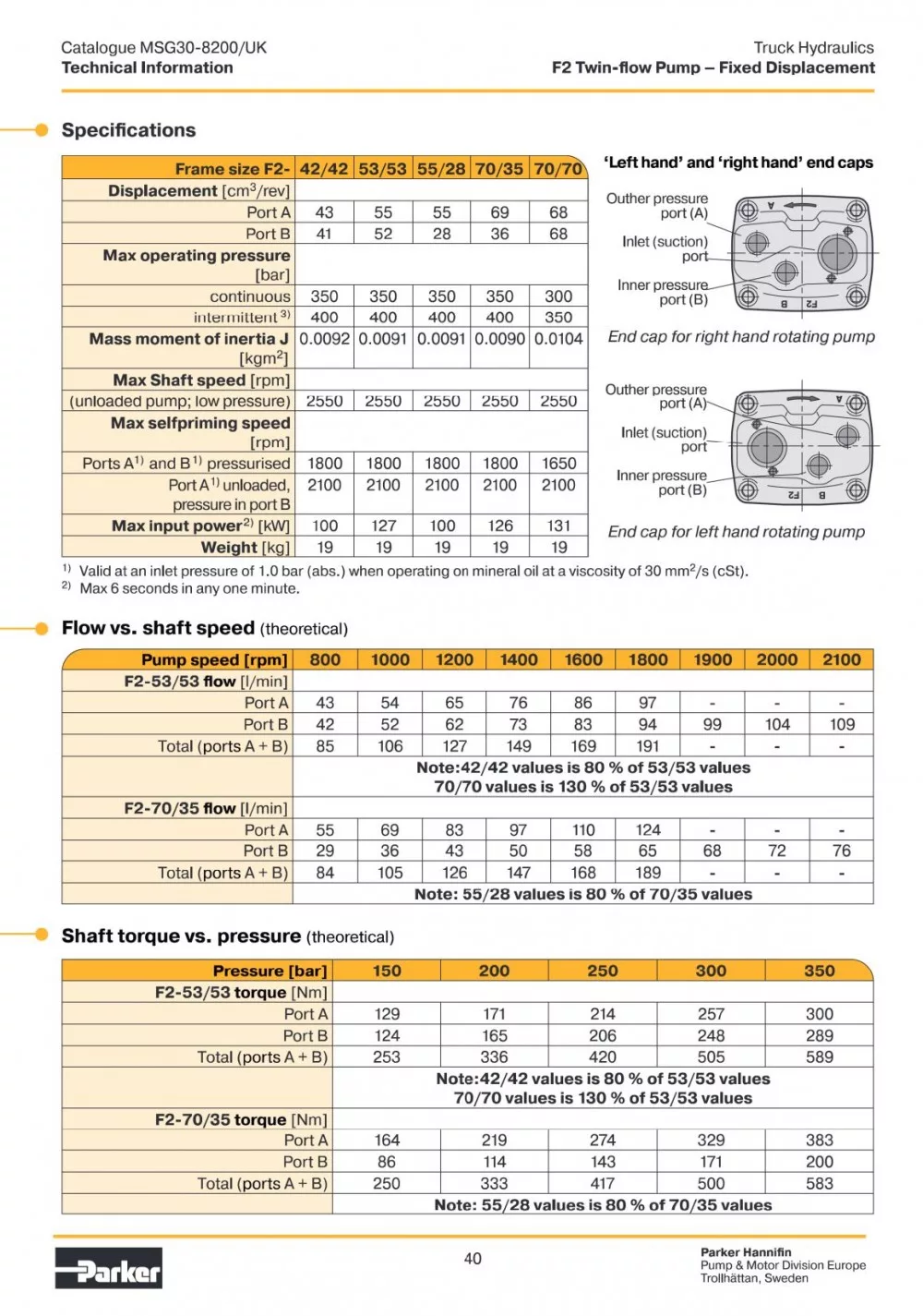 Pompa cu dublu circuit Parker F2 este cea mai bună alegere atunci când trebuie acționate simultan, precis și rapid, două funcții hidraulice independente. Datorită fluxului dublu se pot obține în același timp un debit mare și unul mai mic, sau două debite egale – în funcție de necesitățile sistemului. Această soluție crește nu doar viteza și precizia lucrului, ci optimizează și consumul de combustibil.