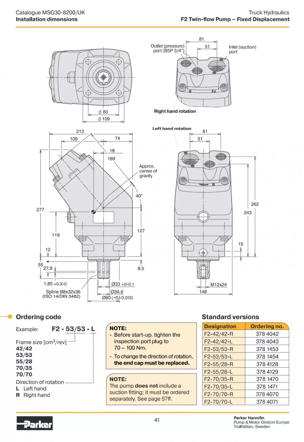 - Cilindrada: 28–70 cm³/rot (variantele porturilor A și B)