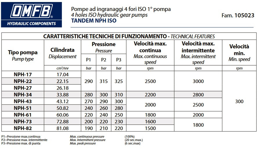Pompă hidraulică cu roți dințate OMFB TANDEM ISO 51 D — cod 10502310517