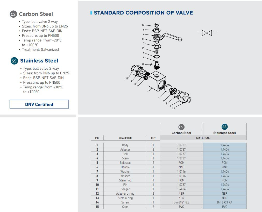 Robinetul cu bilă hidraulic cu 2 căi HK_GE2DDL15011A000 este destinat deschiderii și închiderii în siguranță a curgerii în sistemele hidraulice. Carcasa din oțel, mecanismul de închidere cu bilă, etanșarea cu O-ring NBR și scaunul bilei din POM asigură o funcționare fiabilă chiar și în aplicații de înaltă presiune.