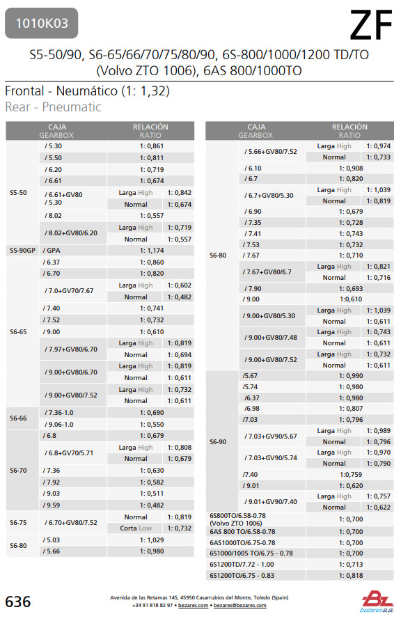 Váltó típusok: S5-50/90, S6-65/66/70/75/80/90, 6S-800/1000/1005/1200 TD/TO (Volvo ZTO 1006), 6AS 800/1000TO