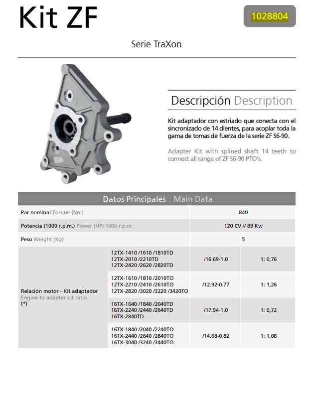 PTO ZF TRAXON 12TX-2620 alaplap + tengely