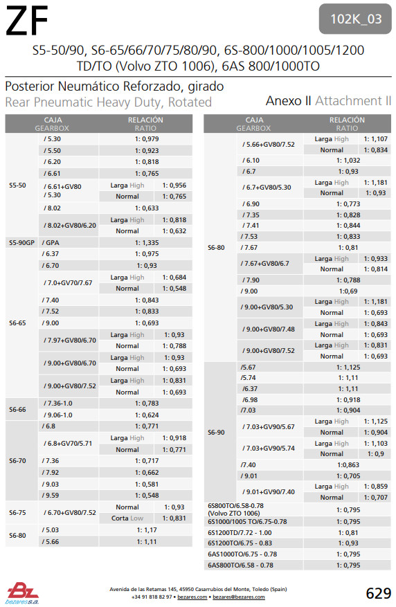 Váltó típusok: S5-50/90, S6-65/66/70/75/80/90, 6S-800/1000/1005/1200 TD/TO (Volvo ZTO 1006), 6AS 800/1000TO (ZF Ecosplit, Astronic,TraXon)