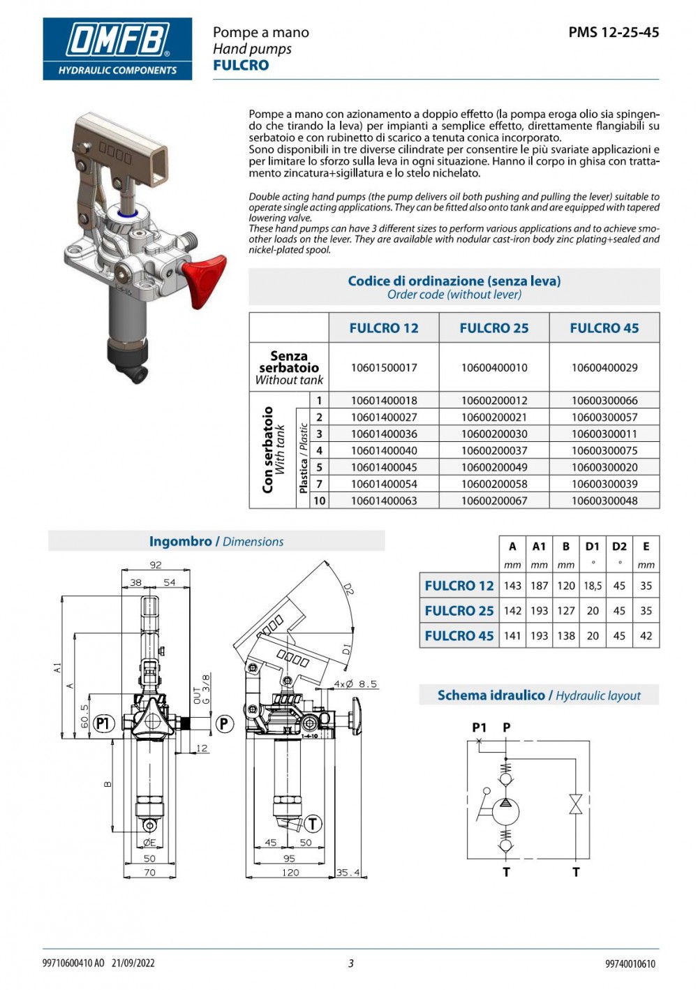 OMFB HIDRAULIKUS KÉZIPUMPA PMS25