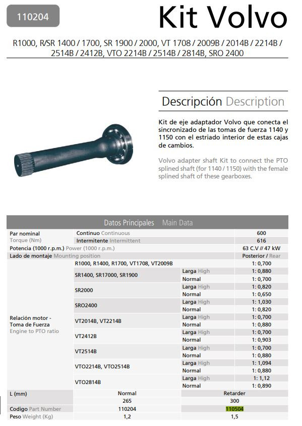 PT VOLVO TENGELY R1000 IT PTO 1140/1150