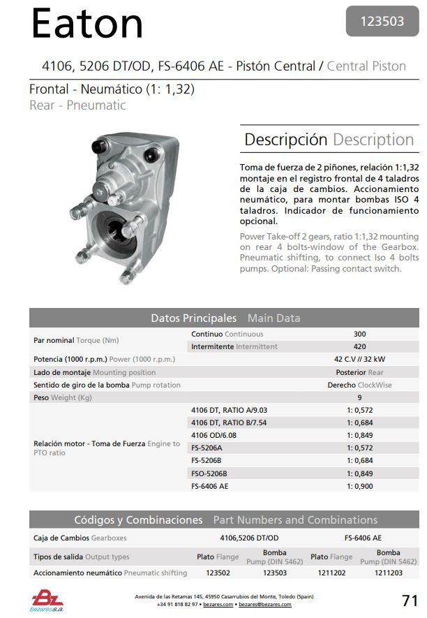 PTO EATON (1:1,32) hátsó hajtás, 4106, 5206 DT/OD PTO EATON (1:1,32) hátsó hajtás, 4106, 5206 DT/OD