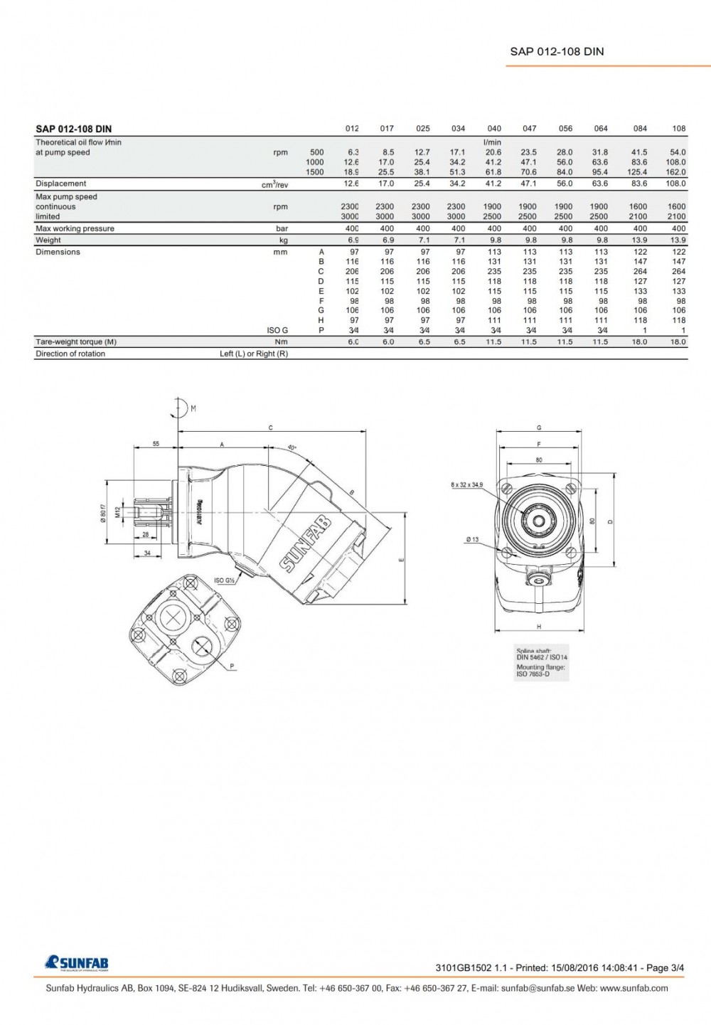 Sunfab SAP-047R-N-DL4-L35-SOS – putere compactă și fiabilitate pentru hidraulica mobilă