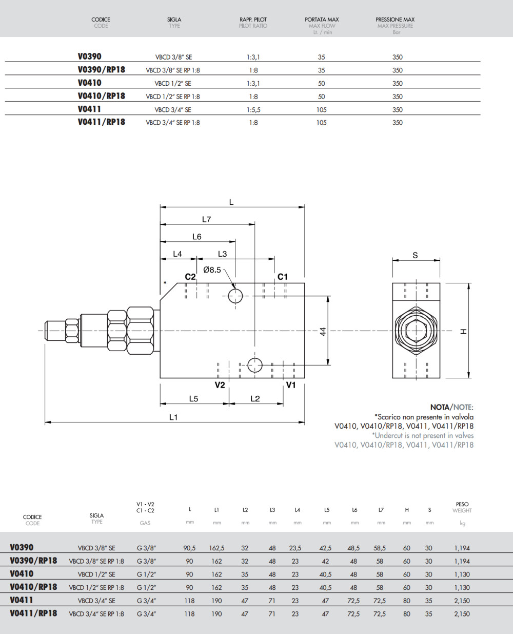Supapa de frână overcenter V0410 comandă mișcarea actuatorului hidraulic și menține în siguranță sarcina sub presiune. Asigură coborârea controlată, împiedicând cavitația actuatorului și scăparea sarcinii de sub control din cauza greutății proprii.