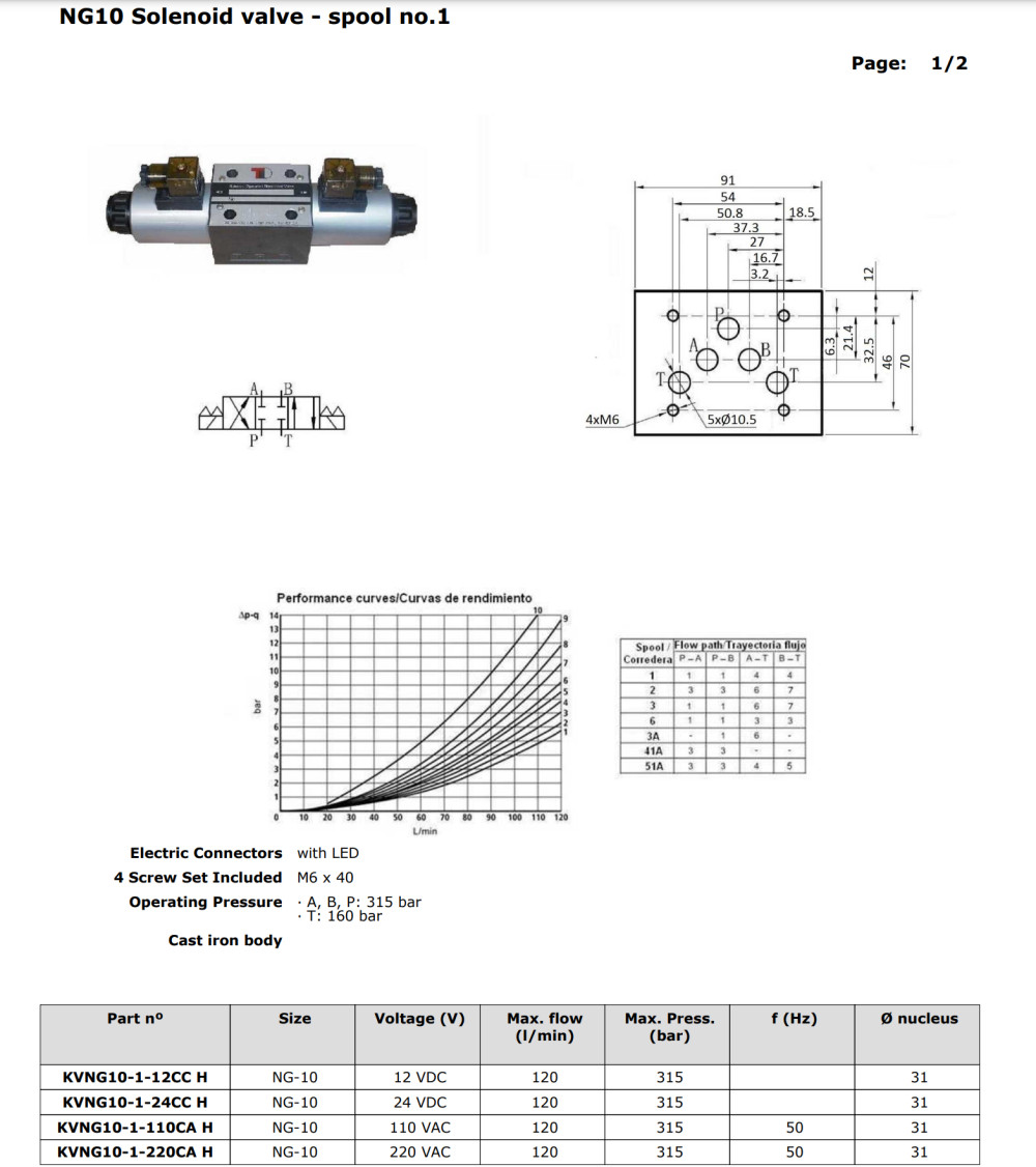 Supapa solenoidală KVNG10-1-220CA-H este un distribuitor direcțional cu acționare electrică, proiectat pentru comanda cilindrilor hidraulici și a motoarelor hidraulice. Carcasa din fontă oferă grad de protecție IP65, iar conectorul este prevăzut cu indicator LED care semnalează starea de funcționare. Construcția conform standardului NG permite înlocuirea directă a supapelor existente.